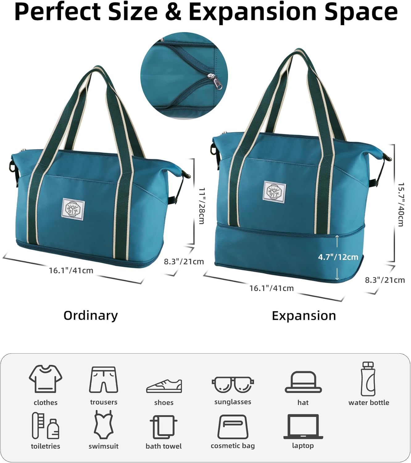 WALNEW Travel Duffel Bag, Waterproof Weekender Overnight Carry On Tote Bag for Women Men, Expandable Sports Gym Duffle Bag
