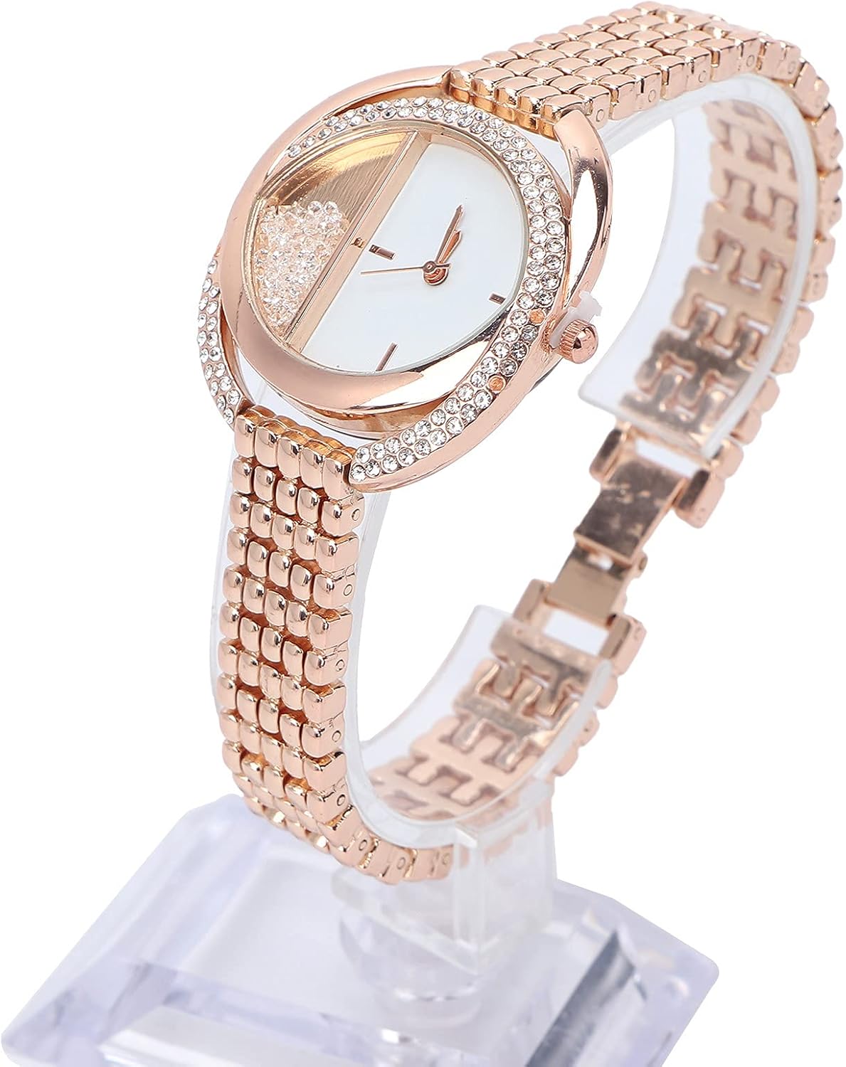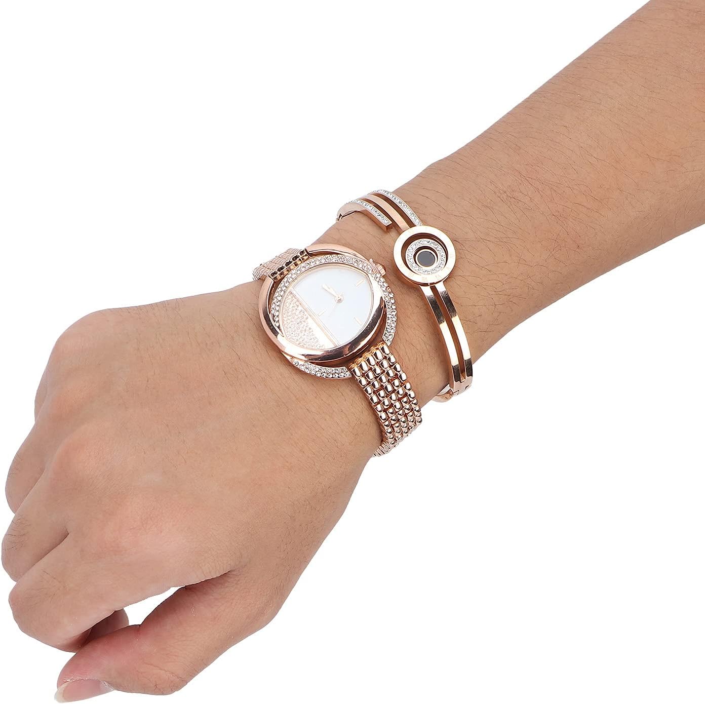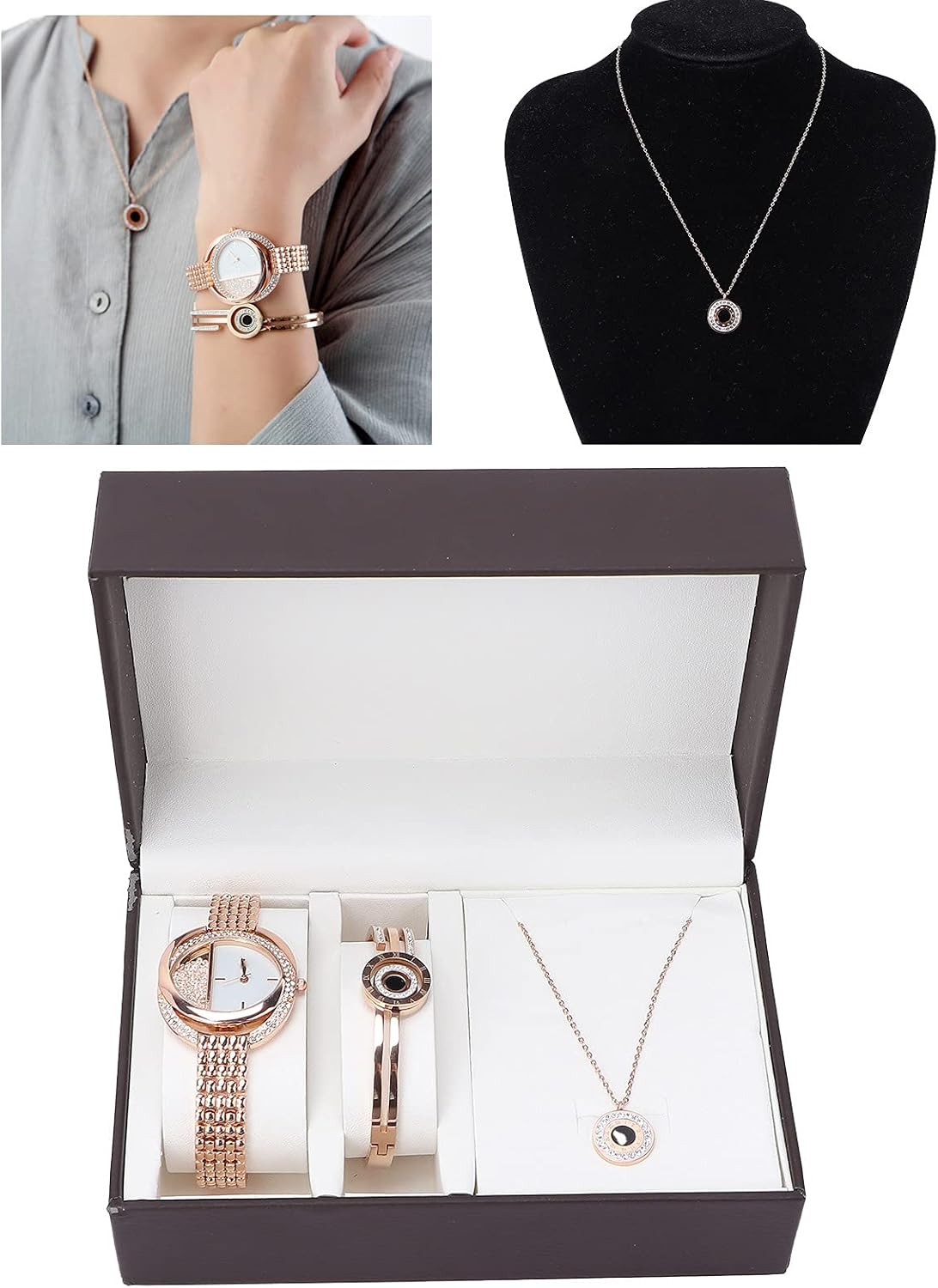 Watch and Bangle Set, Business Style Watch Bracelet Necklace Set Glitter Crystal Women’s Wrist Watches Jewelry Set Gifts for Gradution Working Anniversary for Ladies Women(Rose Gold)