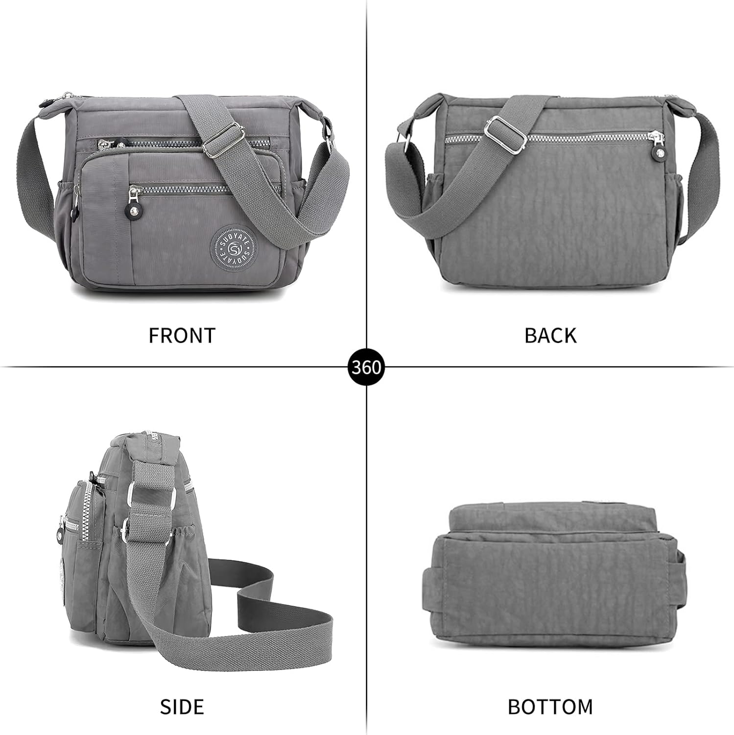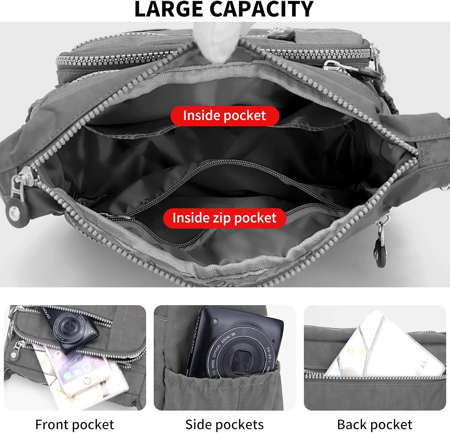WITERY Women’s Lightweight Crossbody Bag Multi Pocket Nylon Shoulder Bag