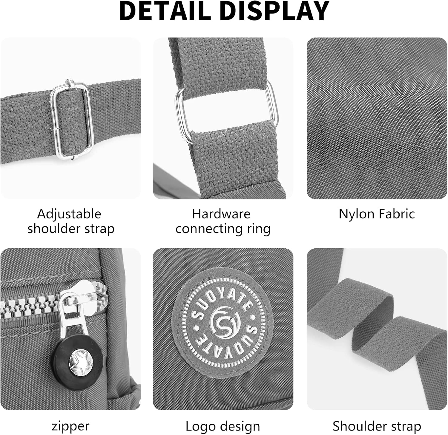 WITERY Nylon Crossboby Bag for Women – Waterproof Zipper Multi-pocket Travel Shoulder Bag Purse Wallet