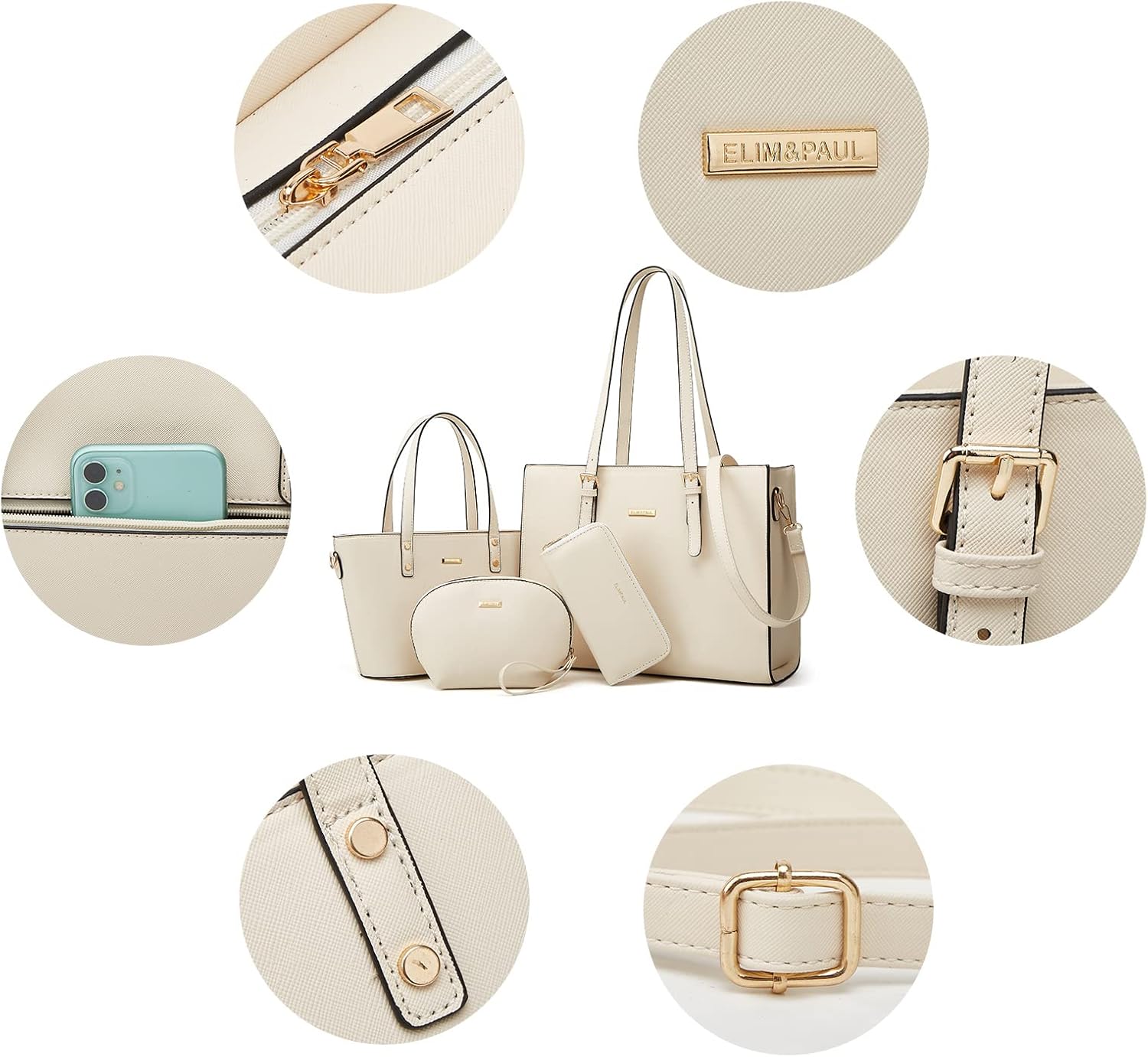 Women Fashion Synthetic Leather Handbags Tote Bag Shoulder Bag Top Handle Satchel Purse Set 4pcs…