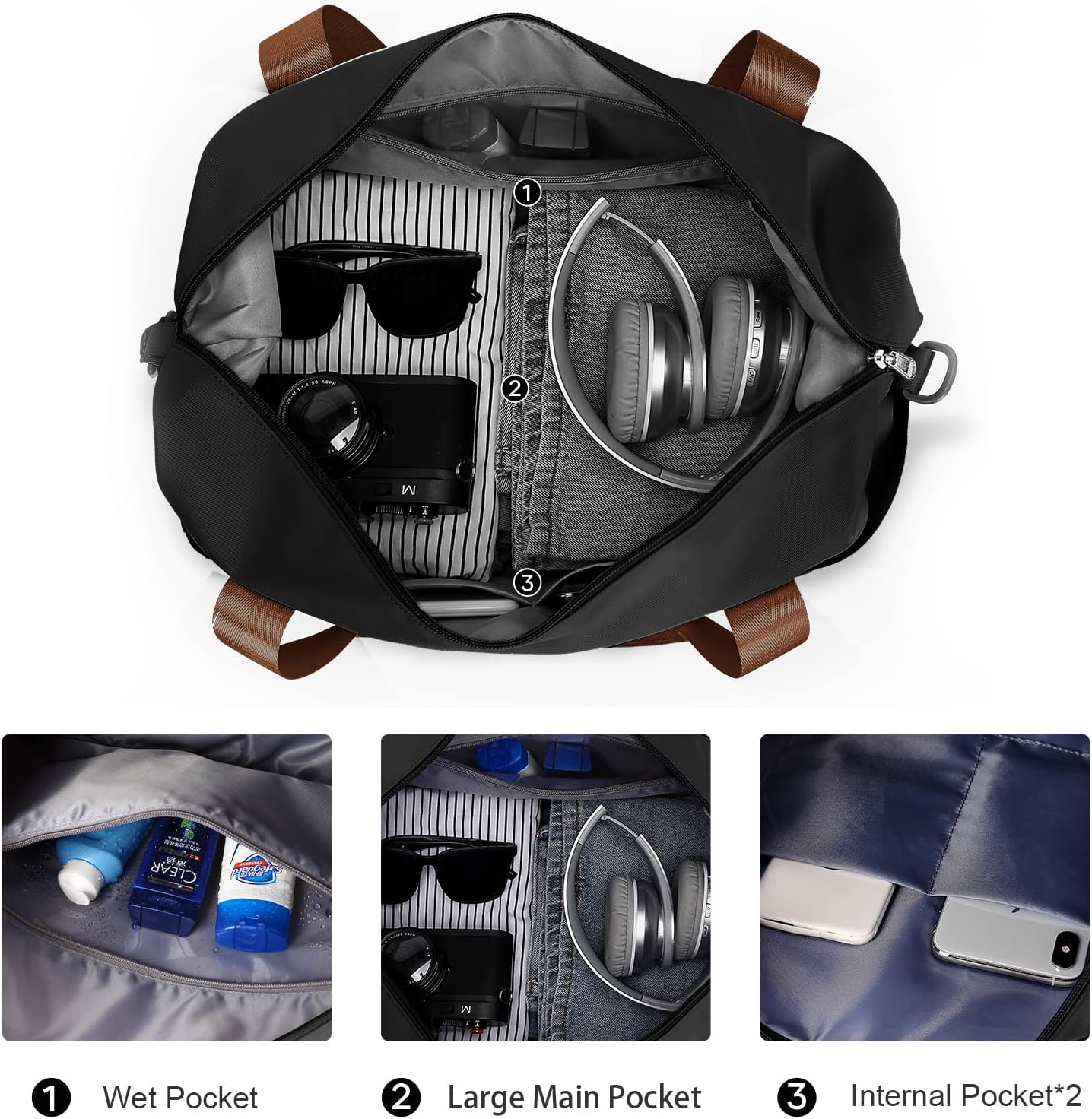 【Dry Wet Separated Tote Gym Bag】High-density waterproof wet pocket in the main compartment,which can help you to separate dry items and wet items,if you have wet clothes or towel,you can put it in this crossbody bag.