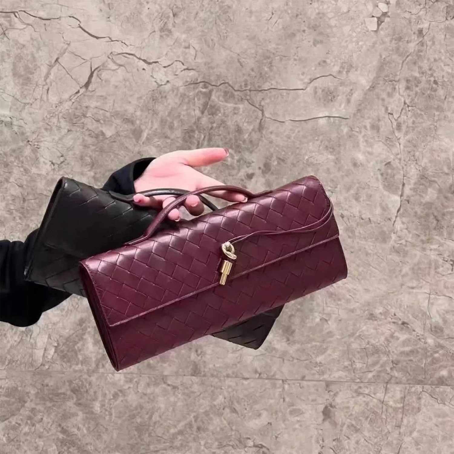 Women’s Handmade Woven Evening Bag PU Leather Handbags Shoulder Bag Crossbody Clutch Purse for Women