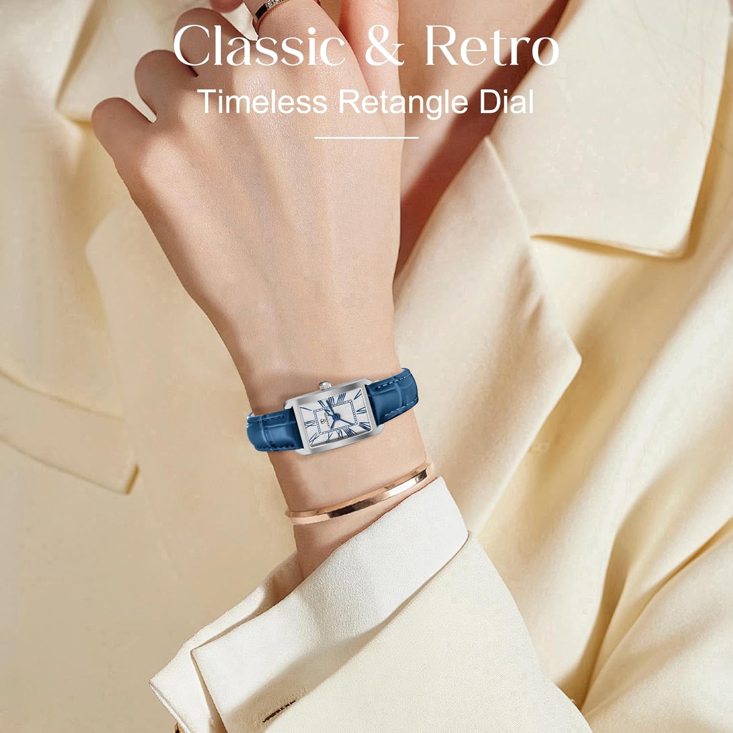 Women’s Leather Strap Watch Dainty Elegant Womens Watches Classic Vintage Retro Square Ladies Quartz Watches Gifts Present for Her