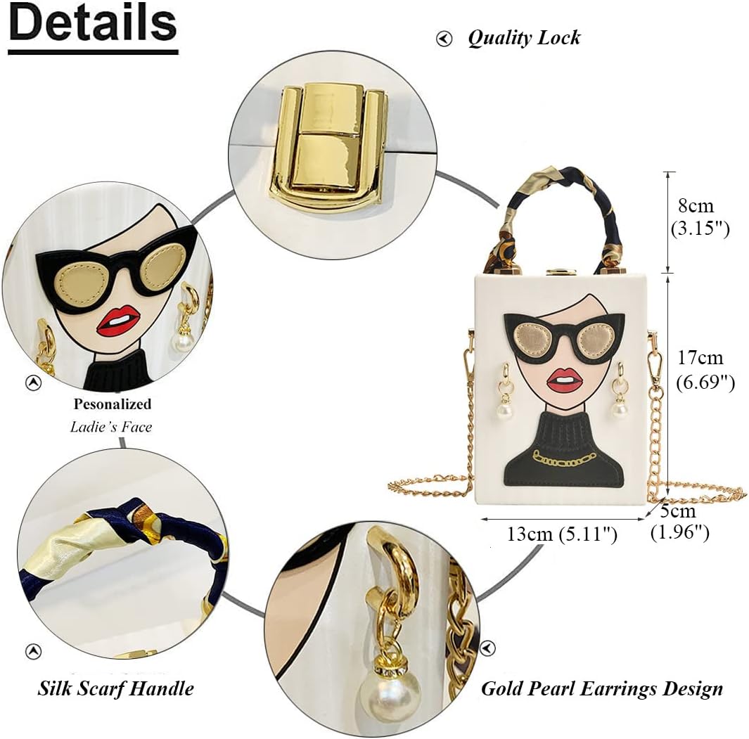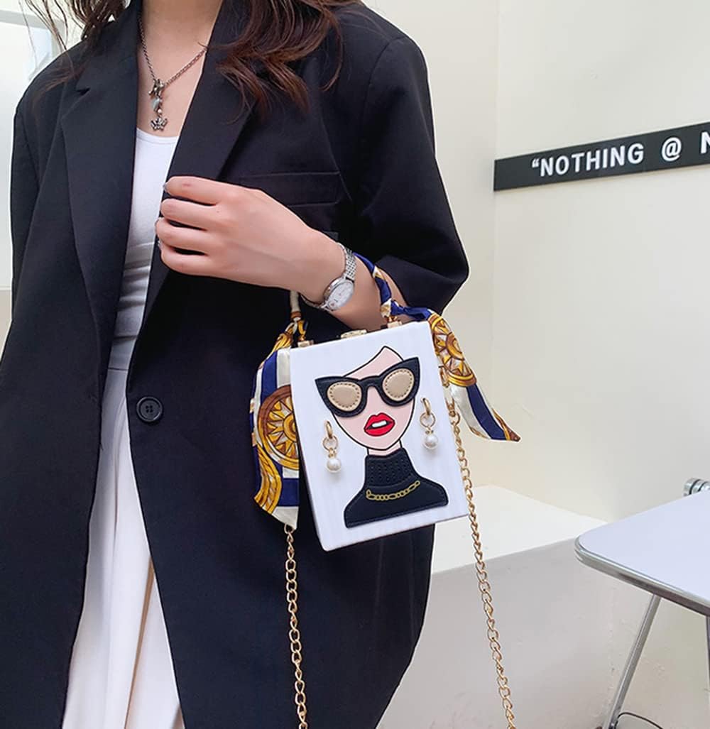 Women’s Novelty Unique 3D Lady Face Leather with Crocodile Pattern Tote Handbags Funky Purse Hobo Crossbody Shoulder bags