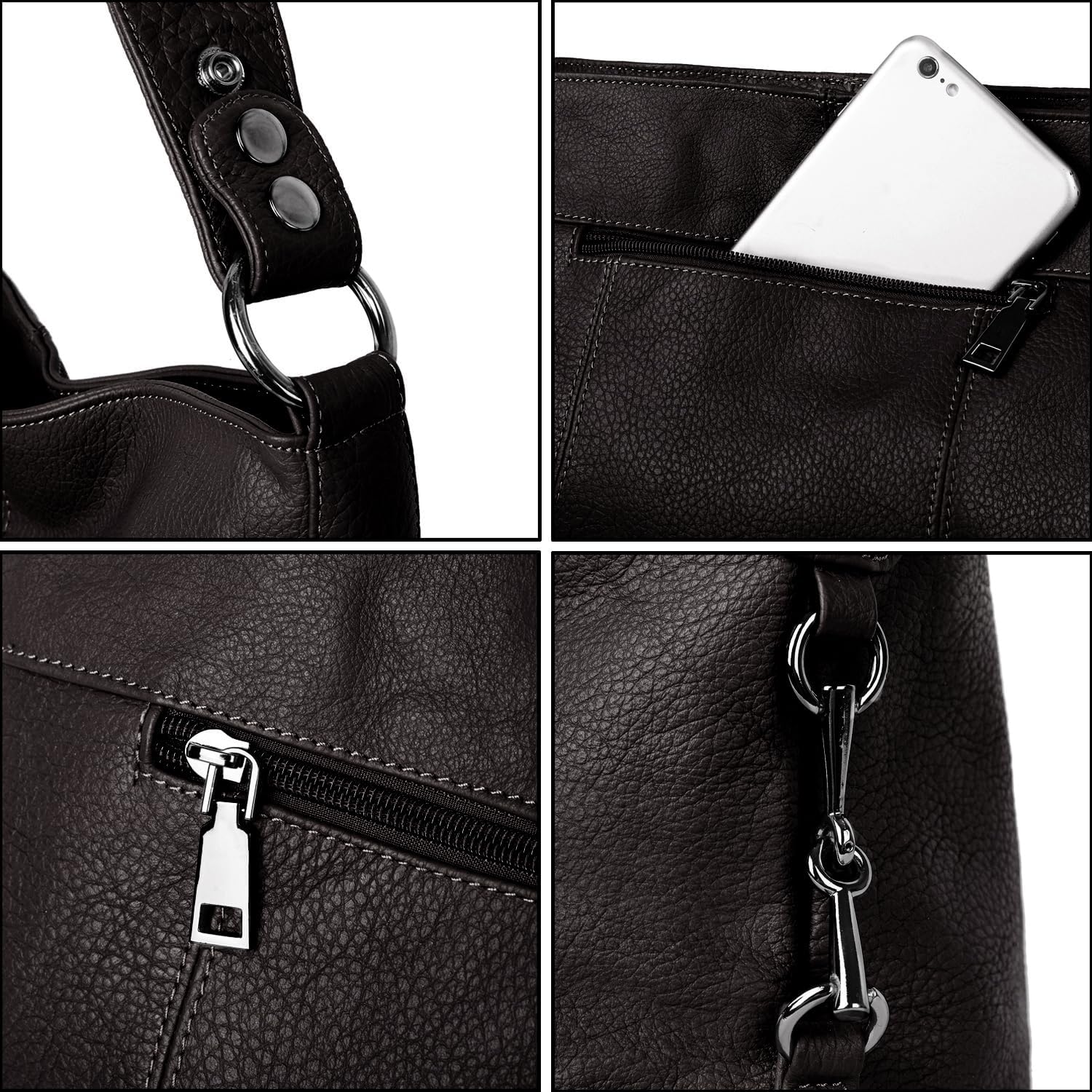YALUXE Women’s Genuine Leather Shoulder Bag Slouchy Handbag Purse Crossbody Bag