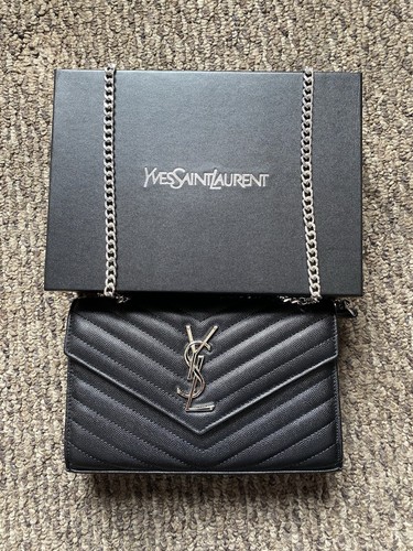 YSL Yves Saint Laurent Black And Gold Caviar Leather Crossbody Bag