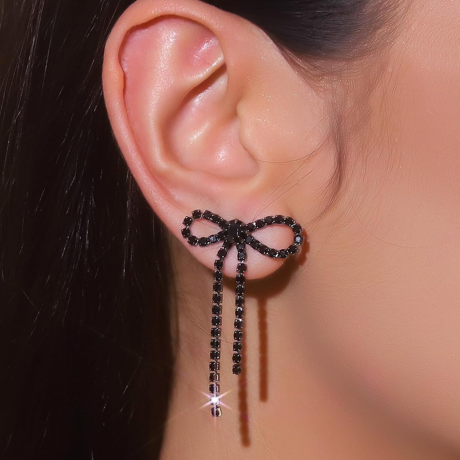 Bow Earrings for Women Trendy Sparkly Rhinestone Long Tassel Bowknot Earrings Cute Ribbon Drop Dangle Earring Wedding Party Christmas Jewelry Gifts