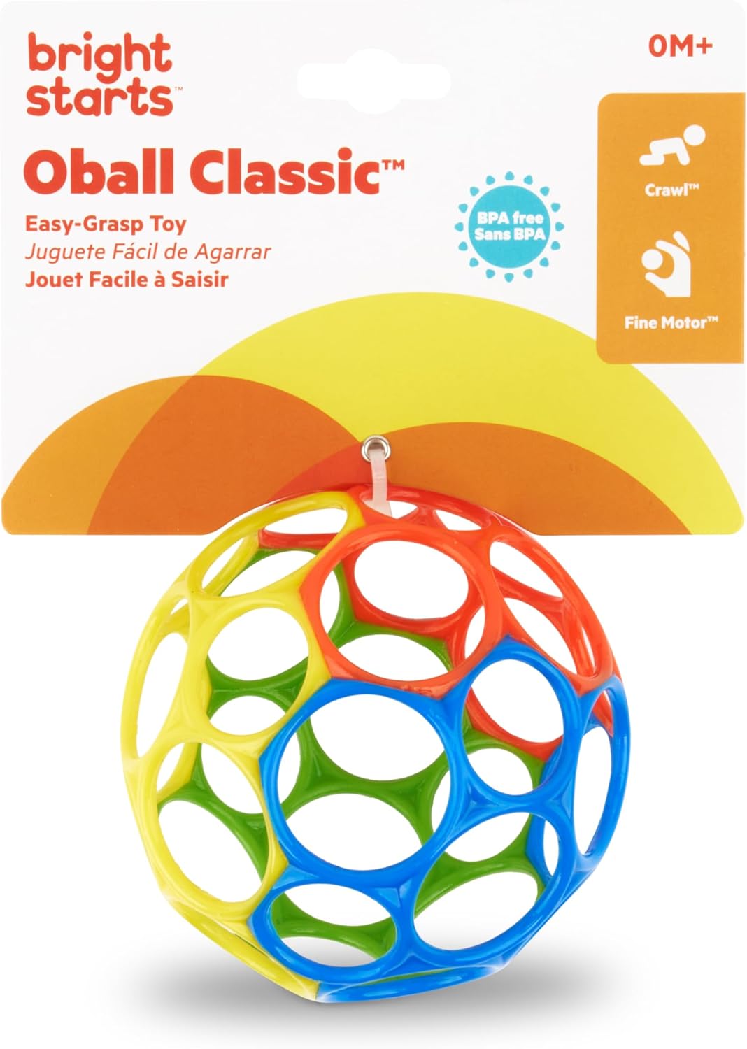 The Oball is a best-selling flexible toy ball that has been engaging tiny fingers for over 25 years; flexible design features 32 finger holes to help baby to easily grip and throw