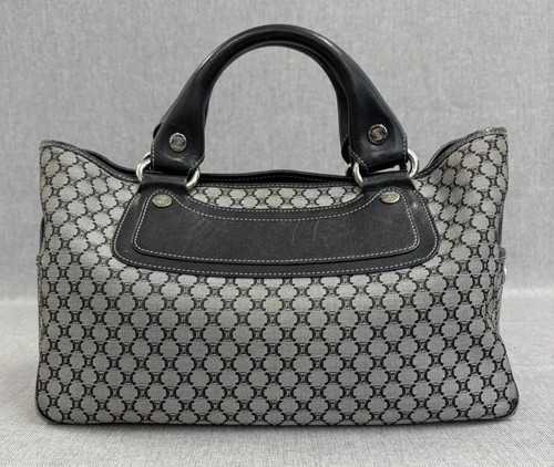 CELINE Macadam Triomphe Boogie Bag Gray Black Canvas Leather Handbag Authentic