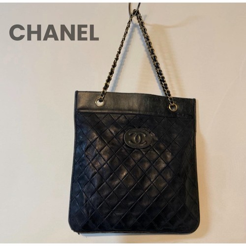 CHANEL Vintage Quilted Lambskin Chain Shoulder Bag Black Gold HW Authentic CC