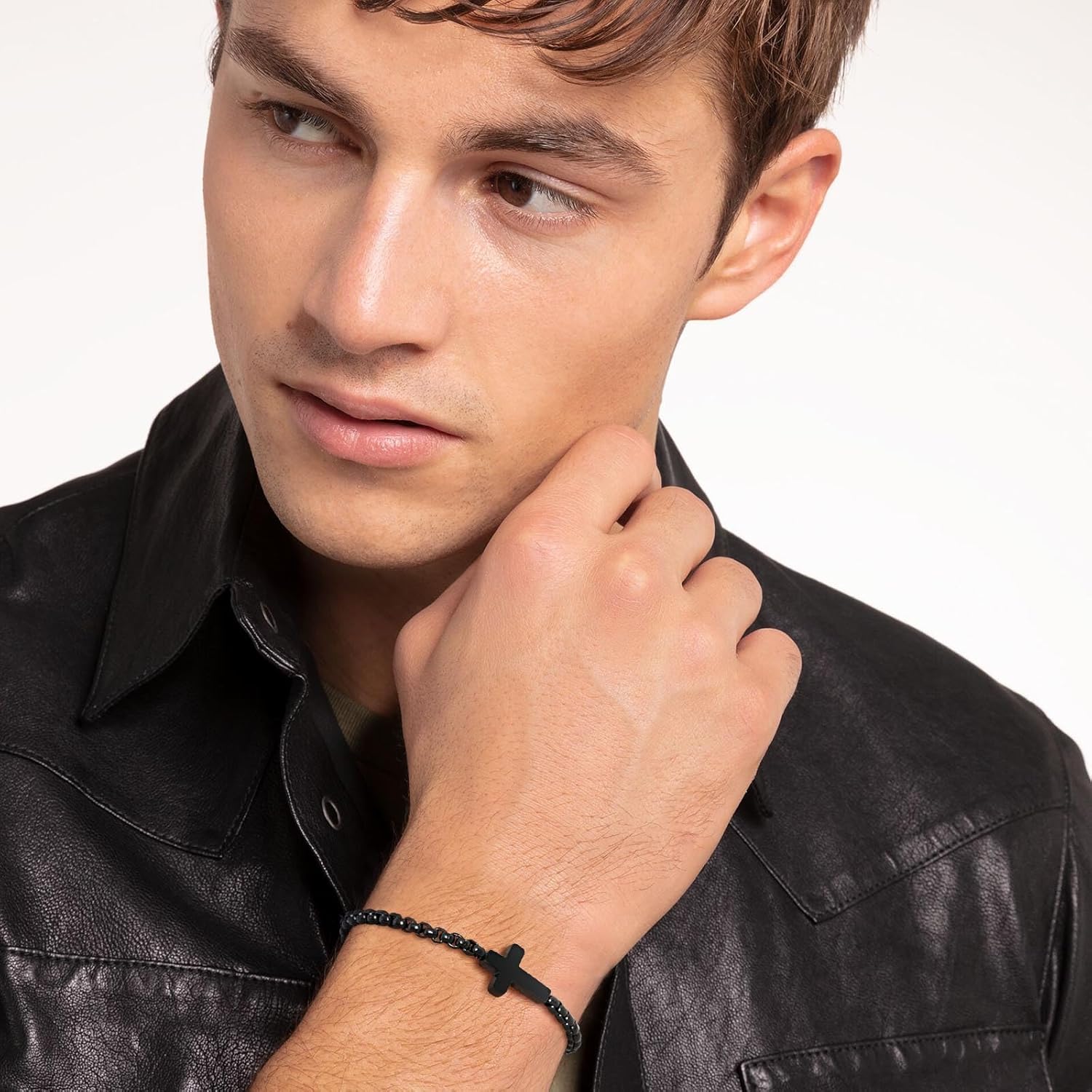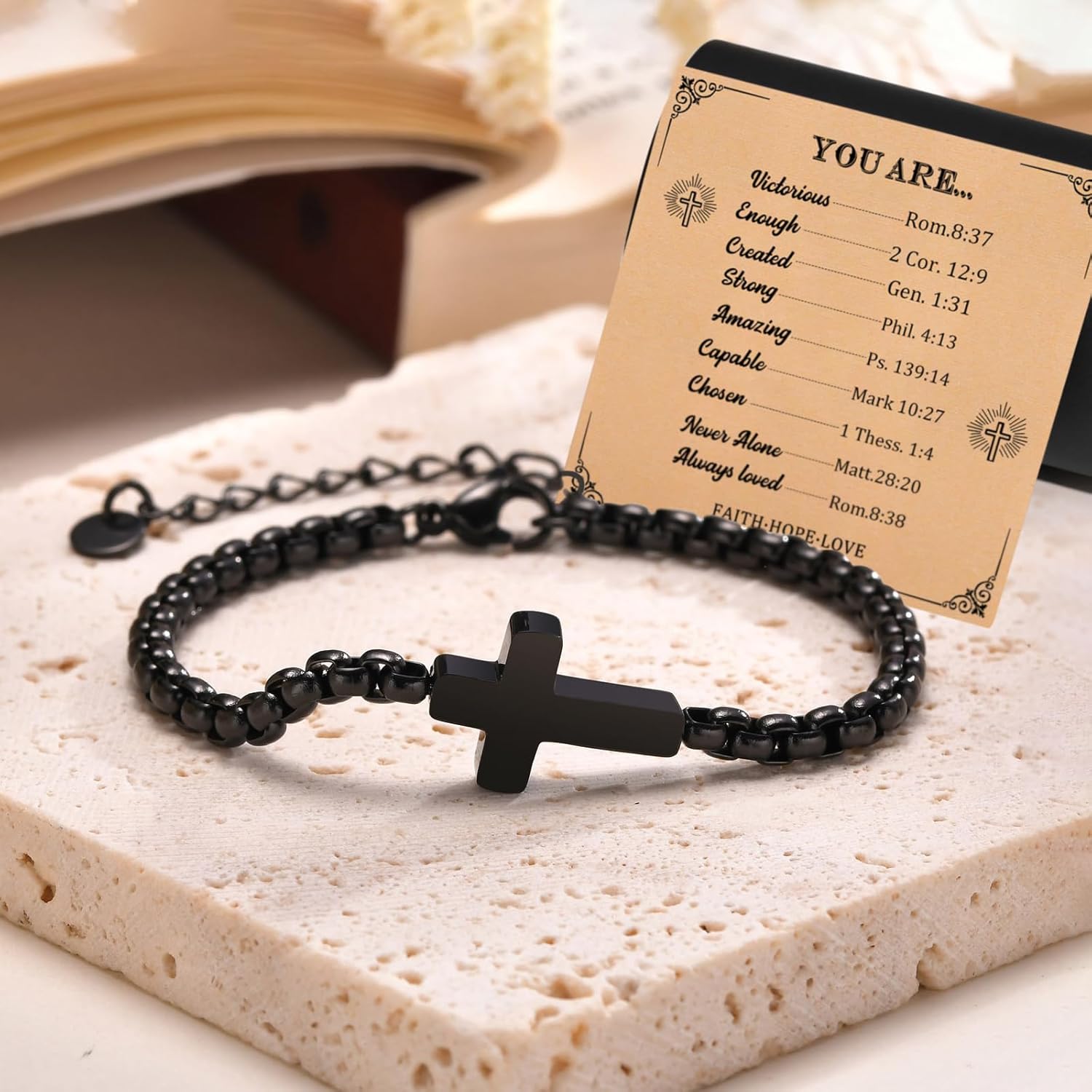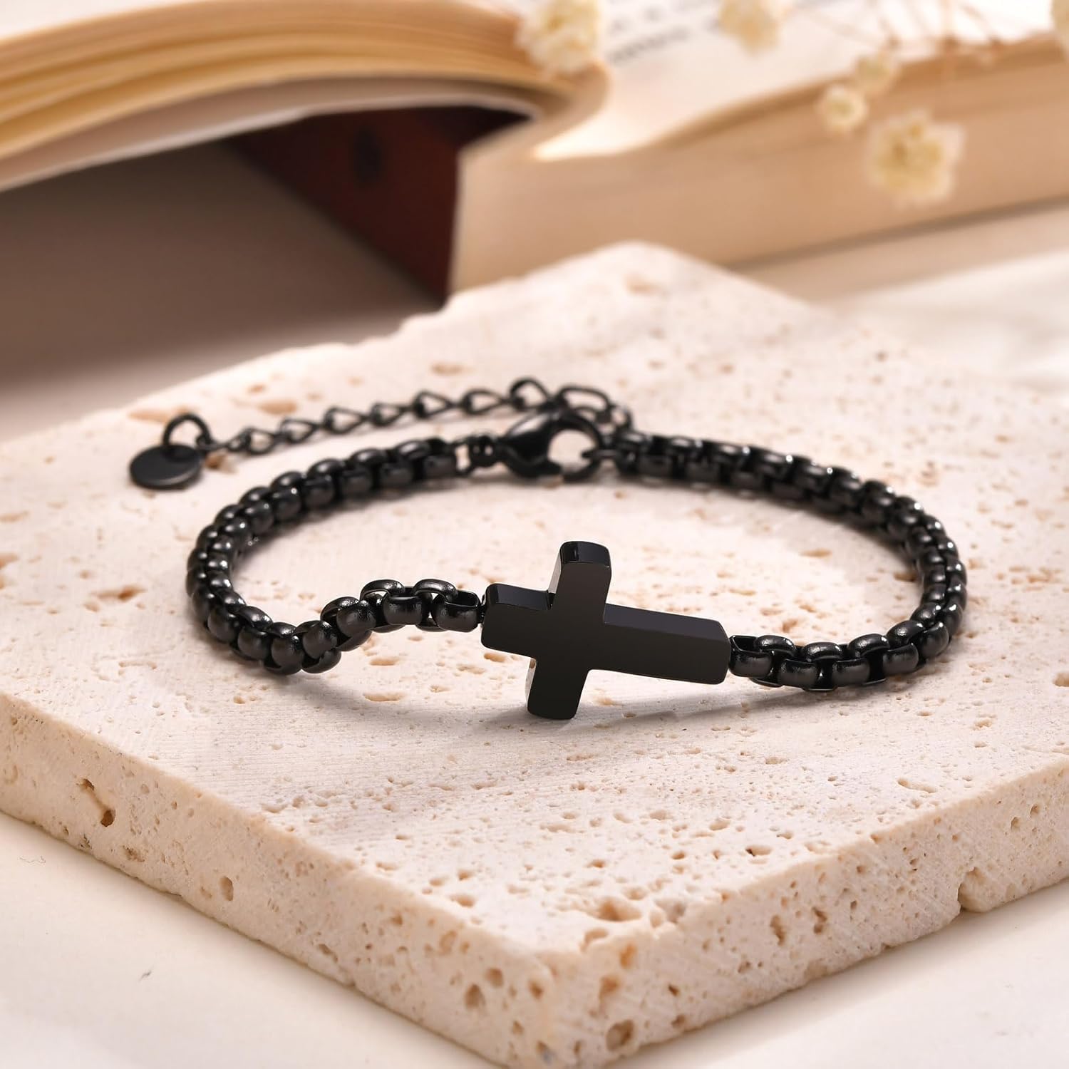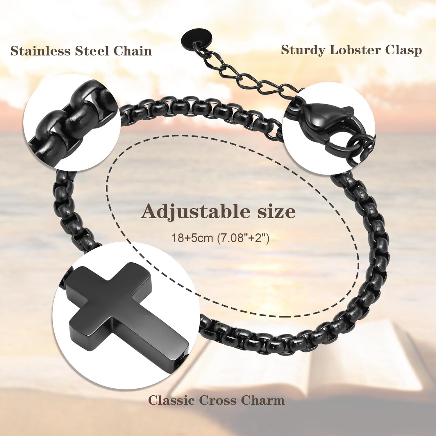 Cross Chain Bracelet For Men, Catholic Faith Religious Crucifix Link Chain Bracelet Easter Christmas Christian Baptism Communion Birthday Gifts To Son Boyfriend Dad For Men