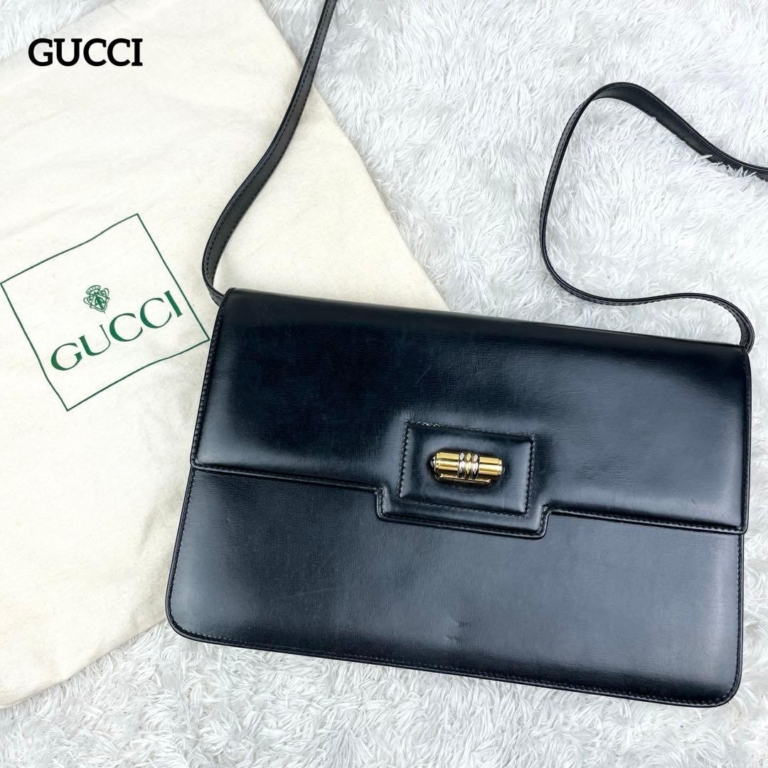 Excellent Condition Old Gucci Turn Lock All Leather Shoulder Bag with Dust Bag