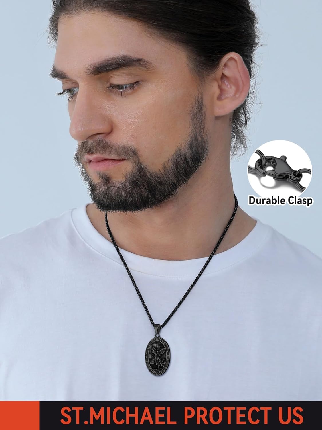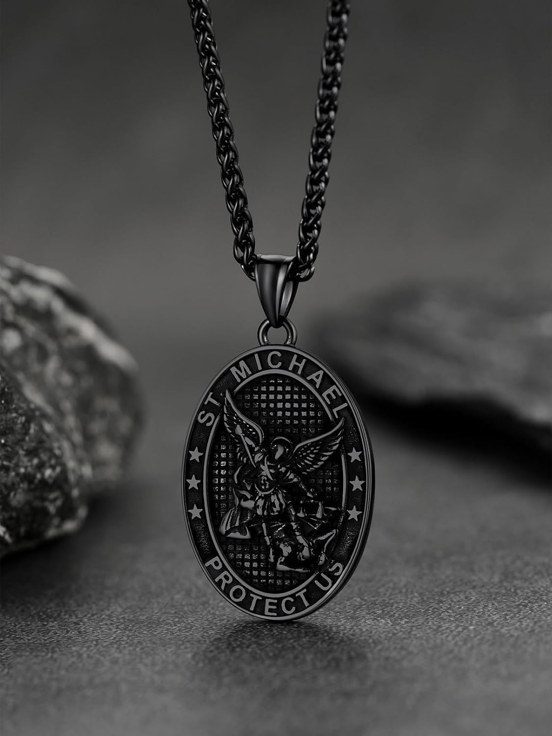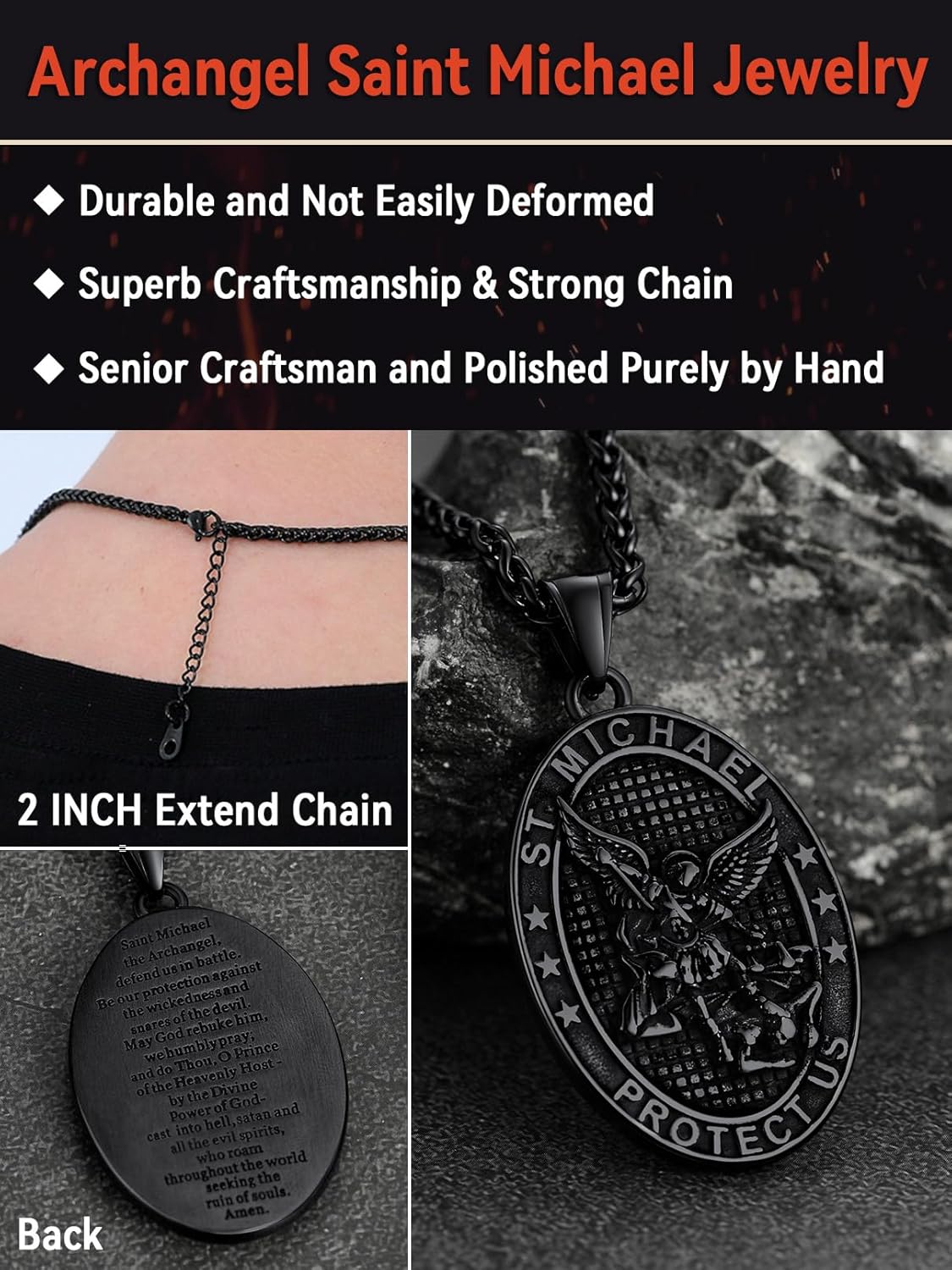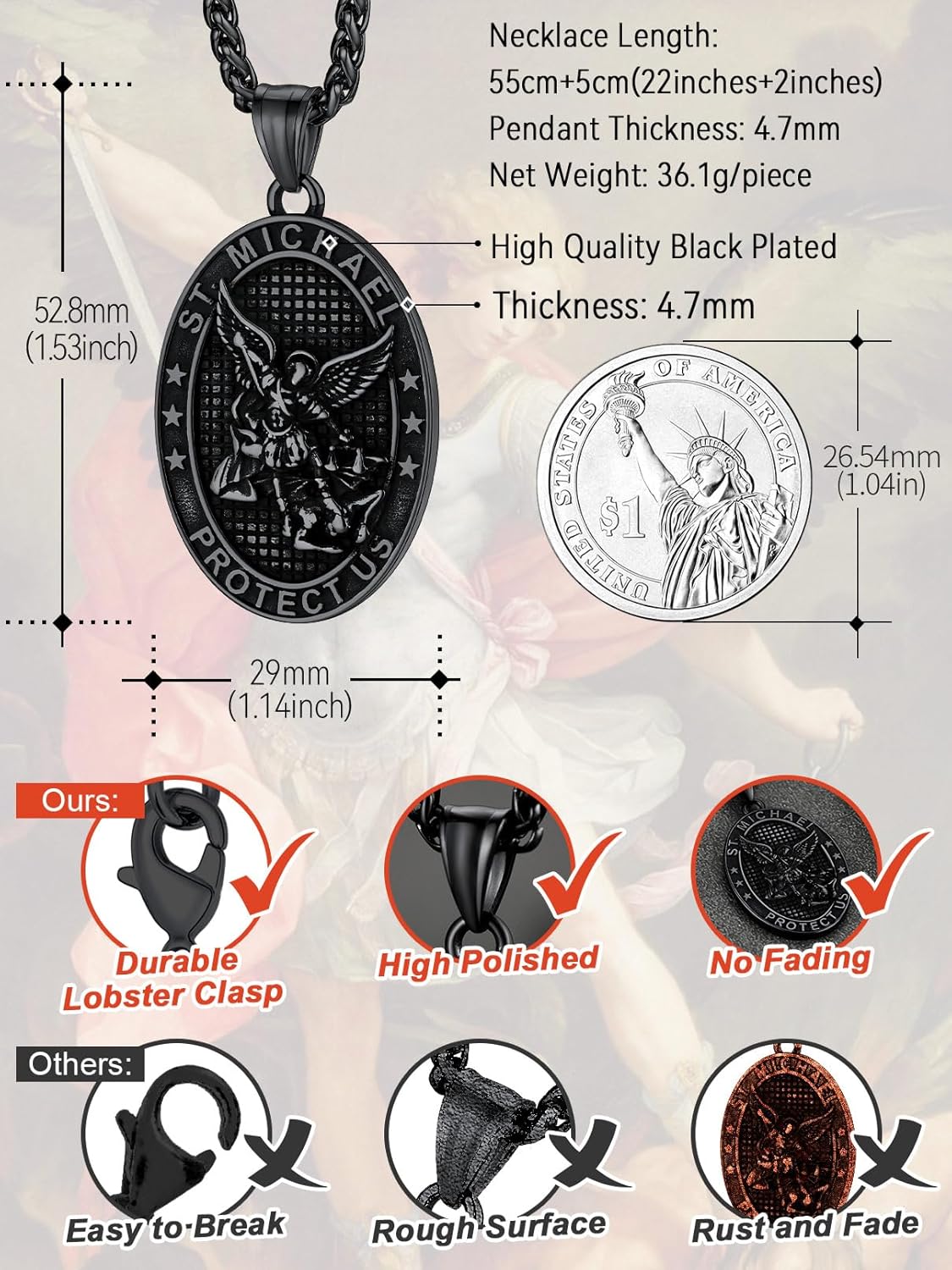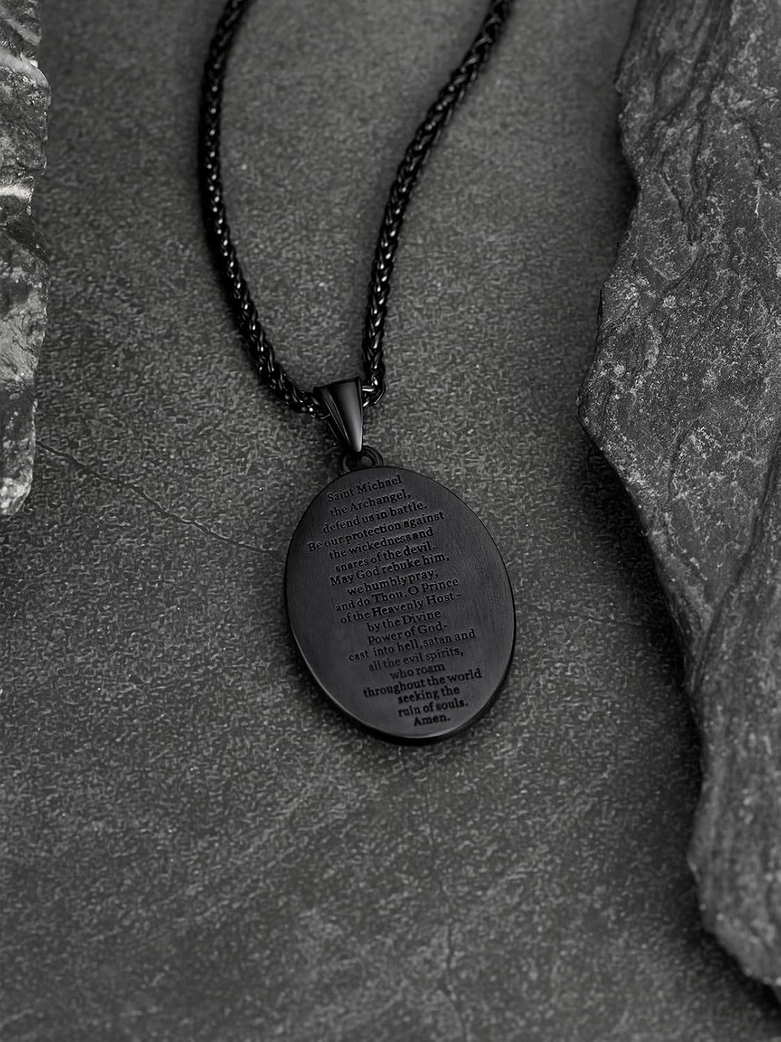 FaithHeart Saint Michael Necklace, Stainless Steel/18K Gold Plated St Michael The Archangel Pendant Amulet for Men Women