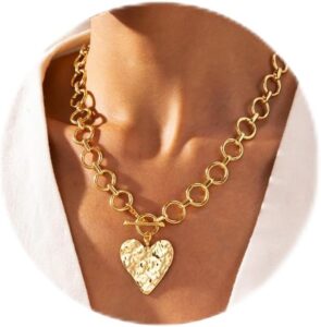 Robaice Gold Chunky Thick Chain Toggle Clasp Necklace 14K Gold Plated Dainty Baroque Pearl/Heart/Cross Pendant Necklace Chunky Jewelry for Women