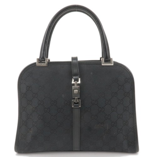 GUCCI Jackie Hand Bag Black GG Canvas Leather 002.1071 Auth Used