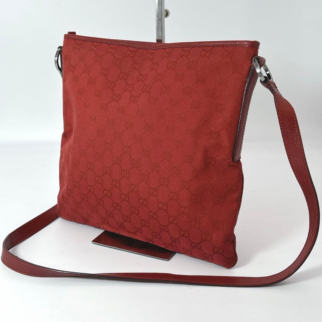 GUCCI Shoulder Bag Gg Canvas Red Leather