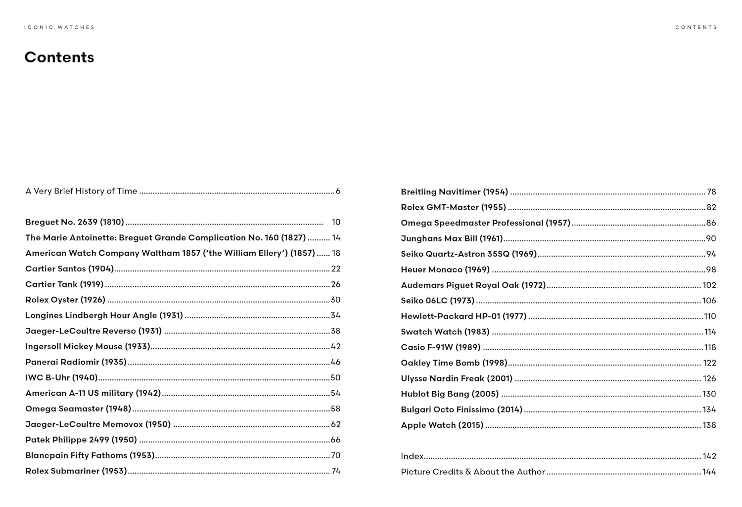 The book 'Iconic Watches' has 144 pages.
