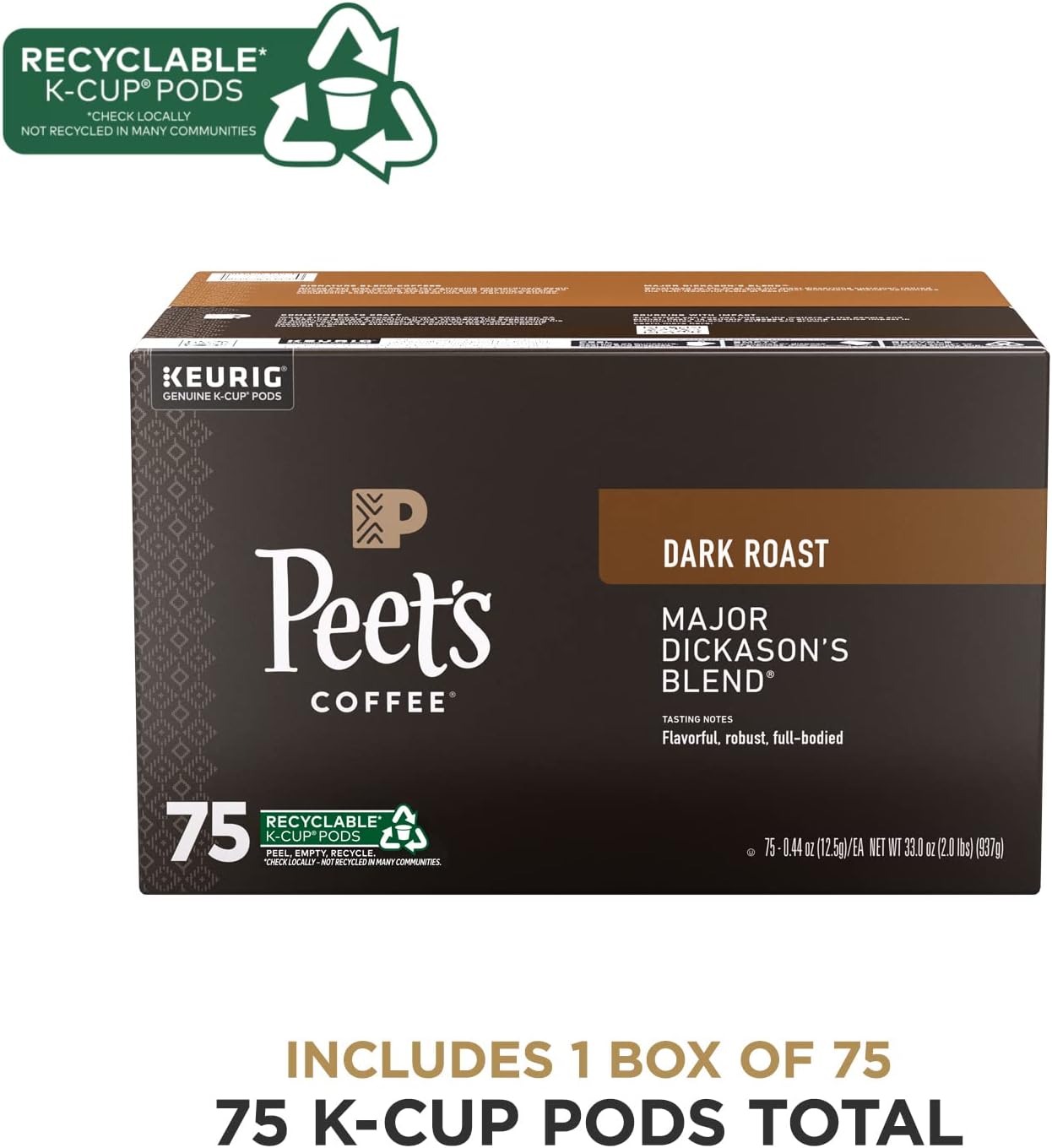 Peet’s Coffee Major Dickason’s Blend Dark Roast Coffee 75 X 0.47 OZ Net Wt (35.4 Oz), 35.4 Ounces