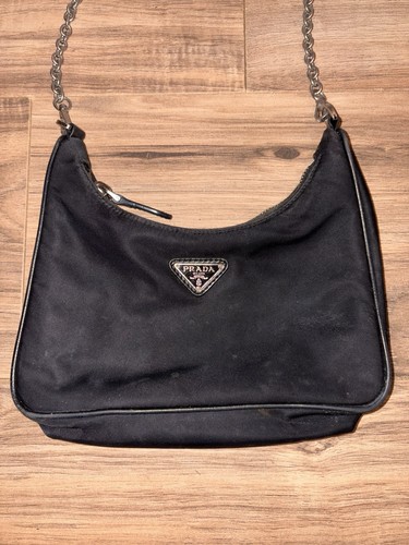 Prada Re-Edition 2000’s Black Nylon Mini Shoulder Bag Chain Strap Authentic Y2K