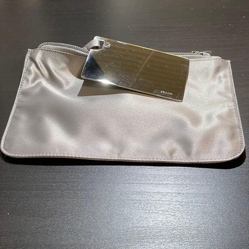 Prada Silver Satin Mirror Pouch Women’s Clutch Bag with Metal Zipper