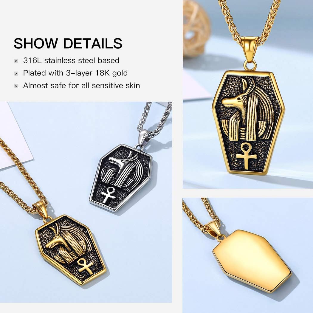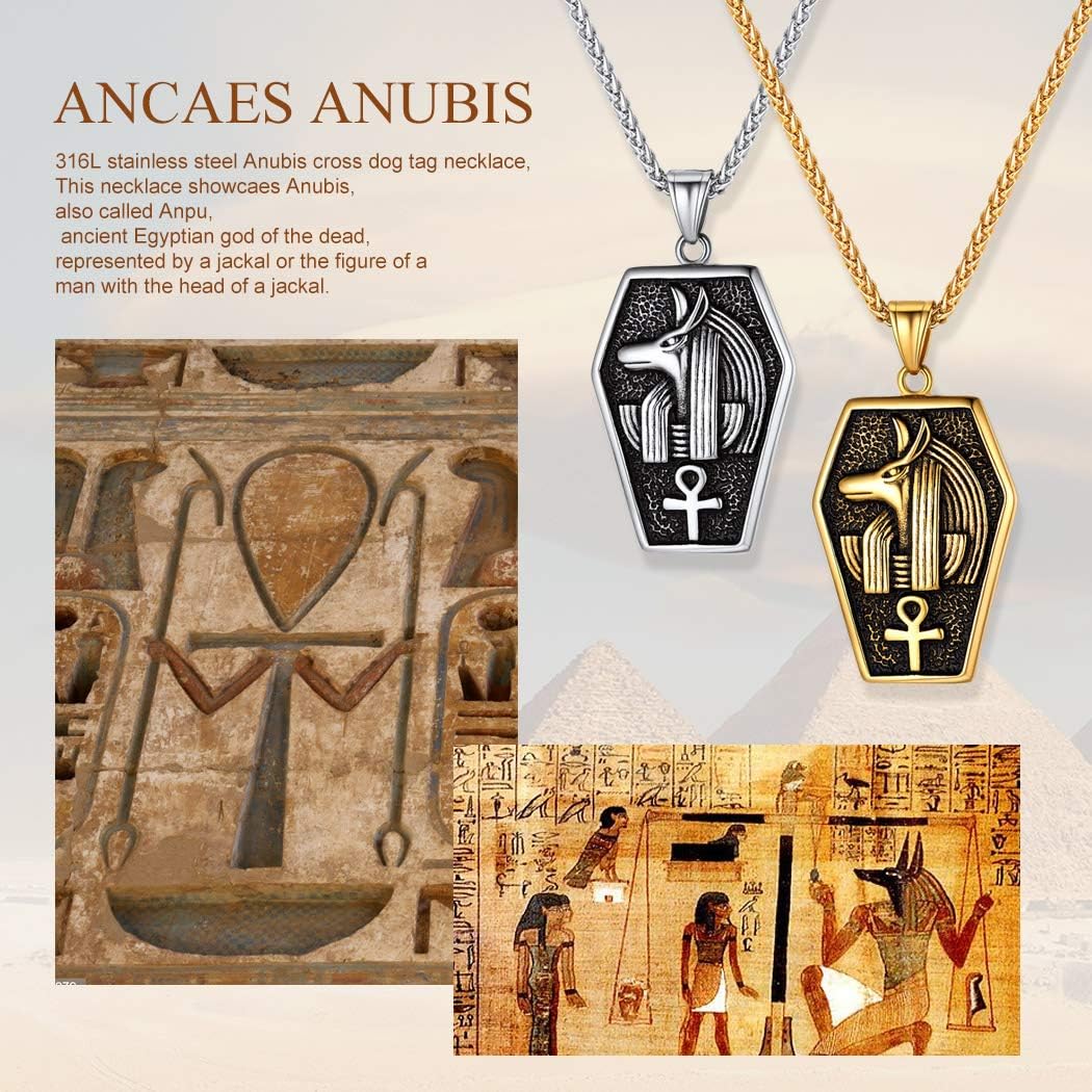 Suplight 925 Sterling Silver/Stiainless Steel Eye of Horus, Key of Life Ankh Cross, Snake Cross, Anubis God of Death Necklace Ancient Egyptian Pendant Necklace for Men Women Jewelry (with Gift Box)