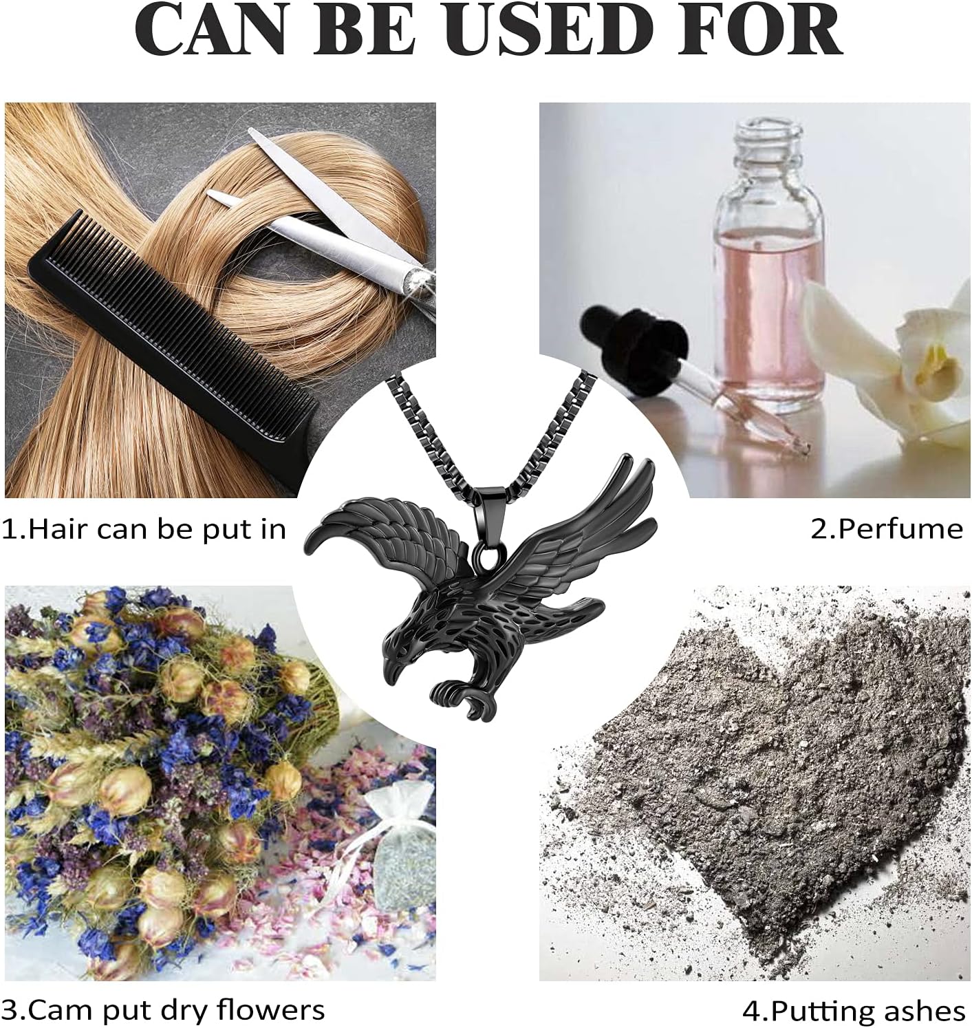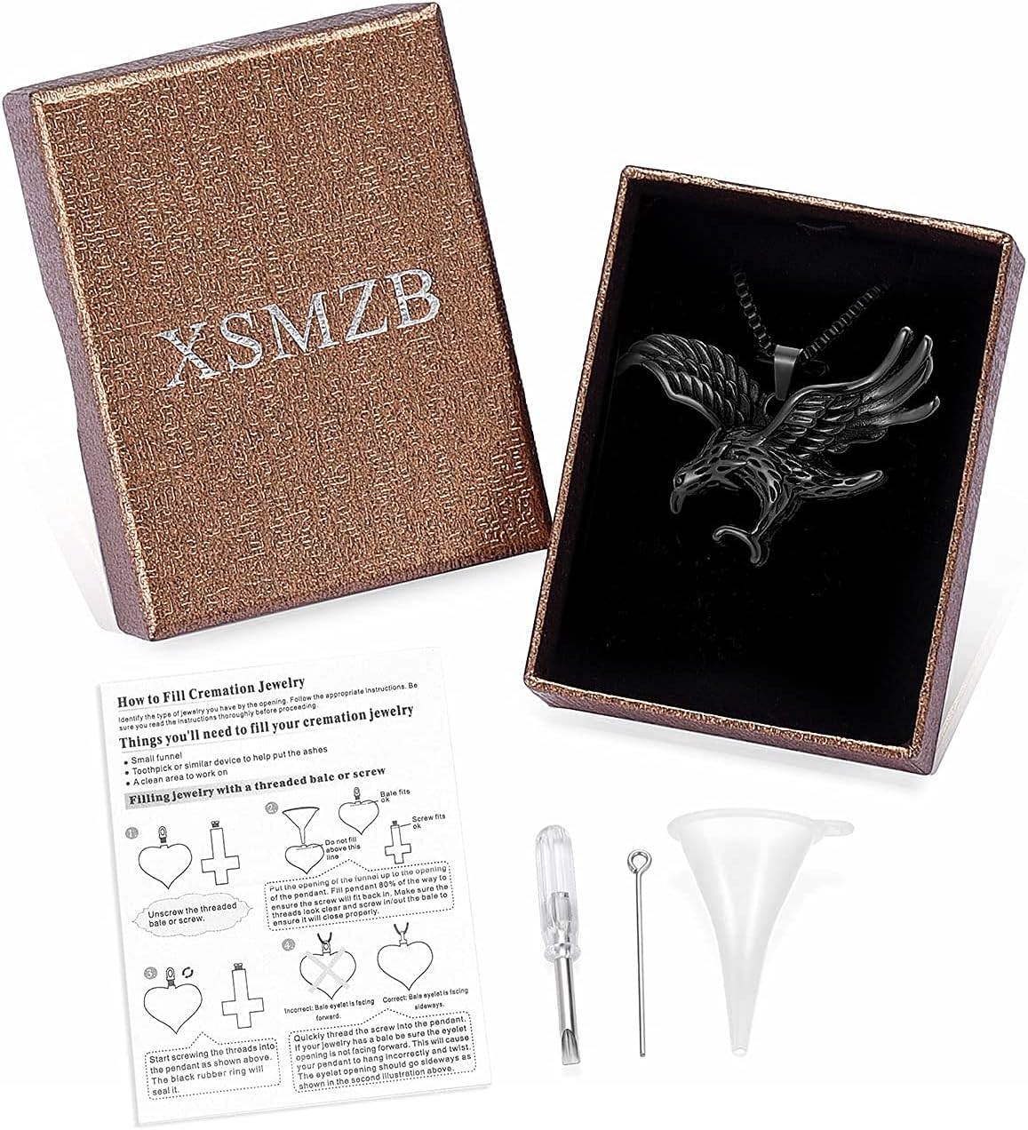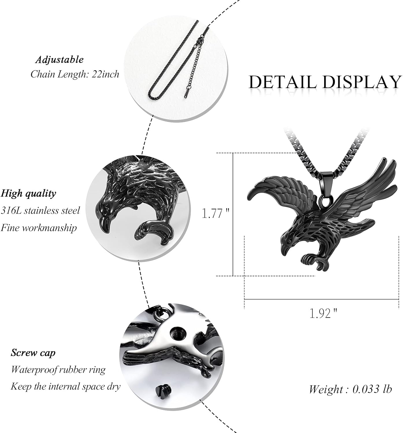 XSMZB Eagle Urn Necklace for Ashes of Loved Ones Keepsake Ash Holder for Pet Human Memorial Cremation Jewelry for Ashes for Men Women