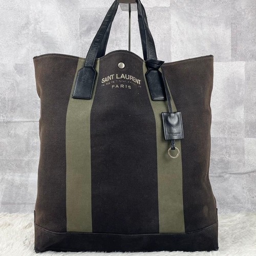 YSL Saint Laurent Tote Shoulder Bag Black Canvas Leather Logo Charm Women’s